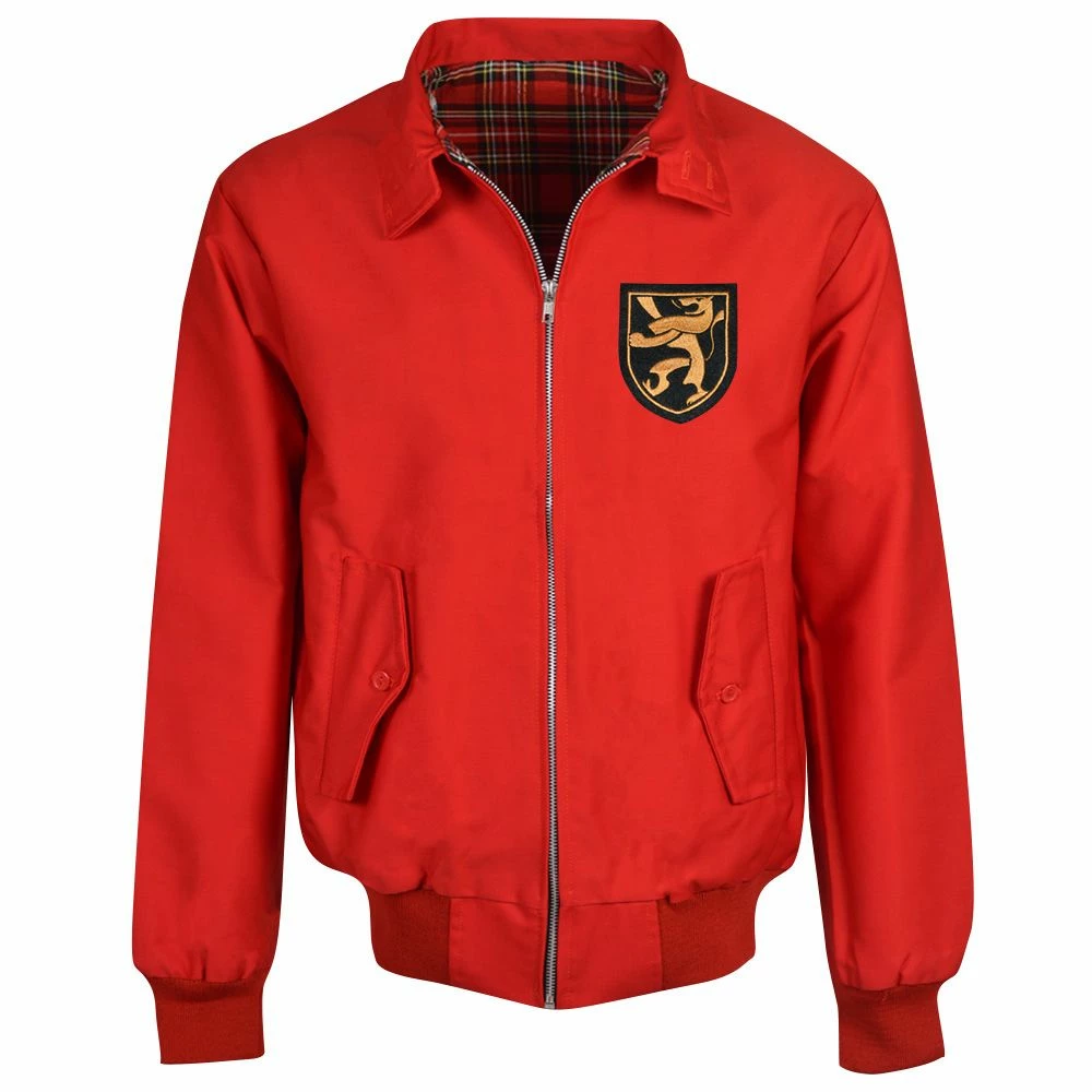High-quality Red Harrington Jacket featuring the Belgium crest from the 1960s on the left chest.
