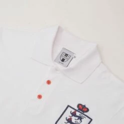 Regular Fit. Embroidered badge. Ribbed collar. Three-button placket. Short sleeves with ribbed armbands.