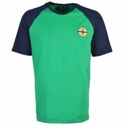 This is our new Northern Ireland raglan style T-Shirt! The short sleeved shirt has the team crest from the 1990 World Cup on the left chest and has been inspired by the current Northern Ireland colours, green and navy. An affordable yet stylish alternative to one of our retro football shirts.