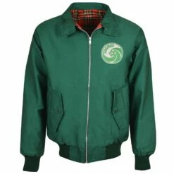 High-quality Green Harrington Jacket featuring the New York Cosmos Badge on the left chest.