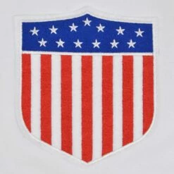 Polo shirt featuring the embroidery from the 1924 USA rugby jersey.